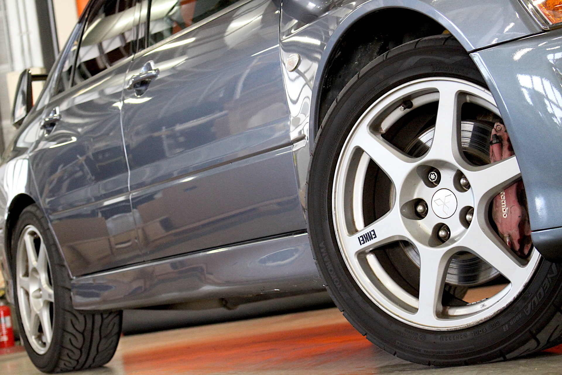 さらにエンジン細部にわたって軽量化を図り、トータルで約2.5kgの軽量化を達成。ピストンやコンロッドの耐久性も高めており、2Lエンジンではトップクラスのトルク40.0kgmに到達している。これほどの進化を遂げてなお、進むことをやめない三菱が翌年に発表したのが、ランエボシリーズで初めてMistubishi Racingを意味するMRの名を冠したモデルであるⅧMRだ。エボⅧで十分な戦闘力を獲たがさらに細かな変更がなされている。注目するのは車両重量の軽量化であり、ドア内部のインパクトバーをアルミに変更し計3.5kg減。そして量産車としては初のアルミルーフの採用により、約4kgの軽量化、そしてオプション設定されたBBSのホイールを装着すると純正比5kg減と合計して約12kgも軽量化されることになる。