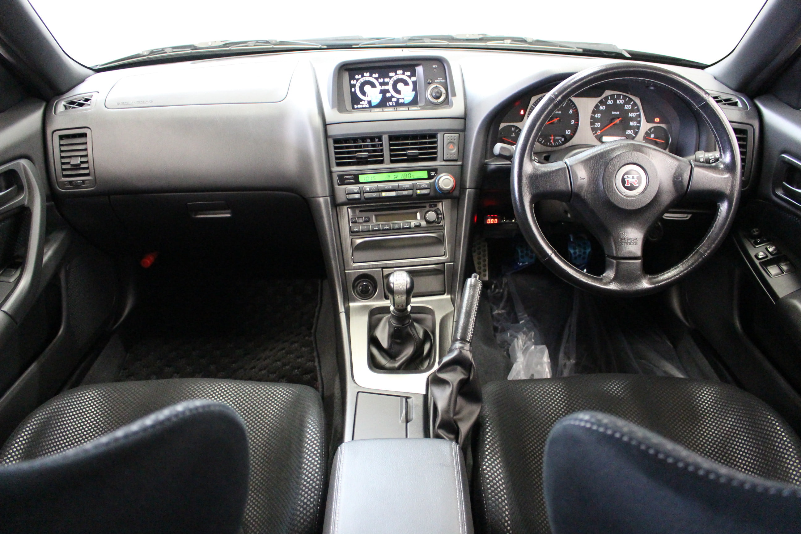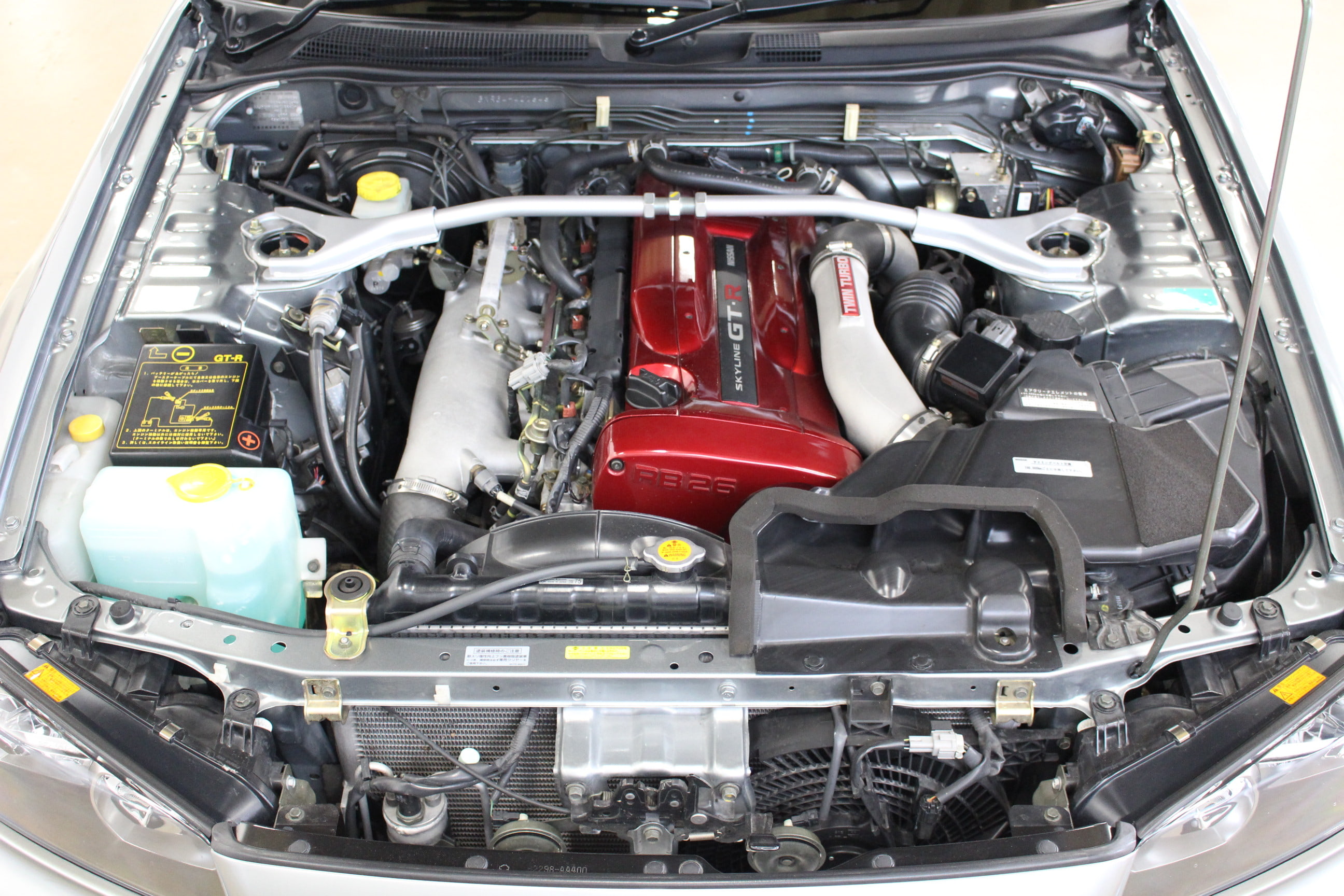 今回当店に入庫した34GT-Rは「VspecⅡ」と呼ばれる、よりプレミア度の高い上級グレード。前期モデルに設定された「Vspec」の後期バージョンといった立ち位置のモデルだ。ベースグレードとの違いはフロントアンダーカバーとカーボン製のディフューザーからなるアドバンスドエアロシステム・専用のチューンドサスペンション・アテーサE-TSPRO・アクティブLSDのインストールなど多岐にわたる、VspecⅡでは更にNACAダクトが特徴的なカーボンボンネットを採用し4kgもの軽量化を果たしており、追加のスポット溶接なども最適化され、見た目にもメカニズム的にもより完成された「V」の名が相応しい仕上がりとなっている。