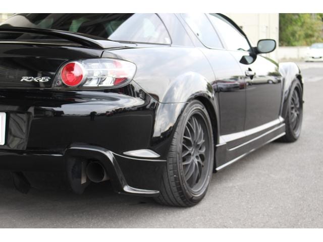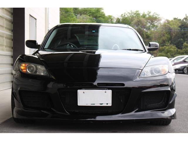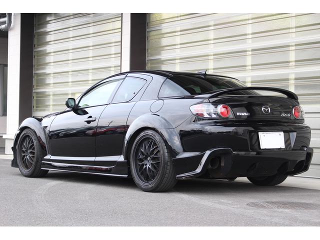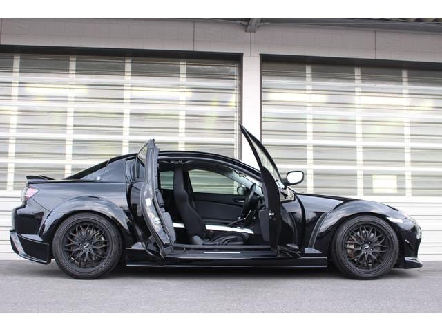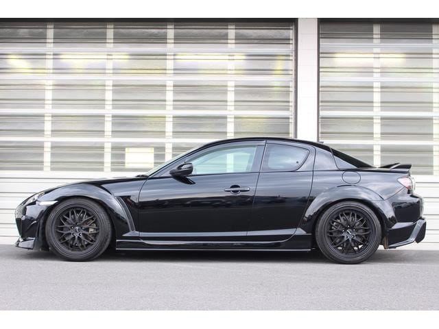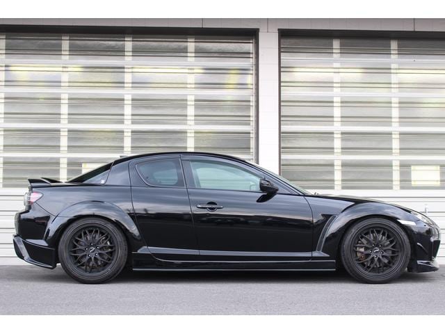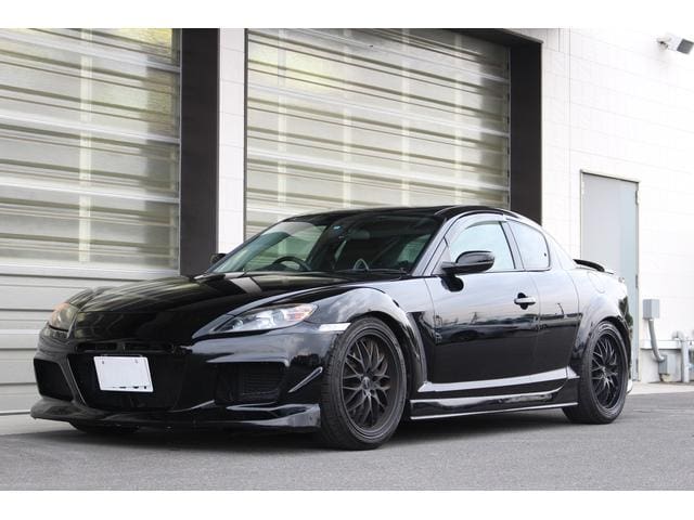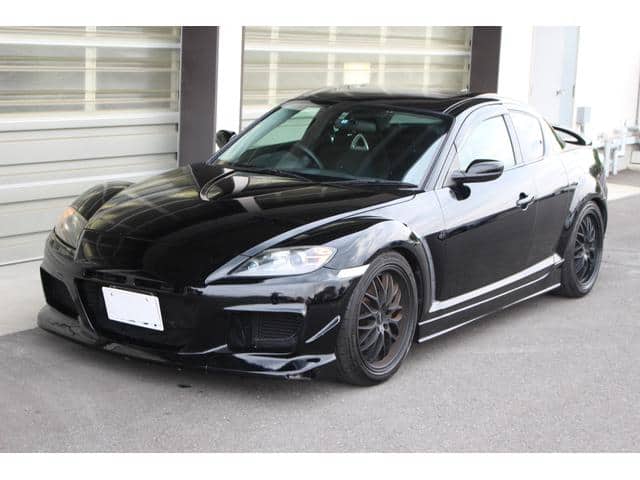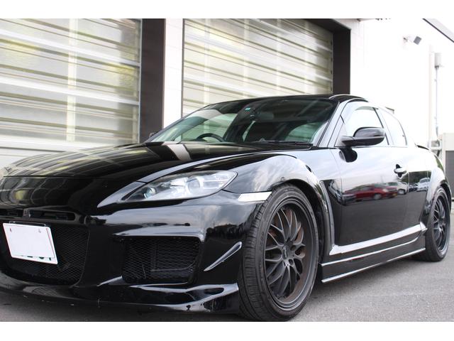 絶版モデルとしてプレミア性の増すRX-7・FD3Sに対して、手頃な存在となってきたRX-8。搭載される13B-MSPは、前期のタイプSに限りNAながらカタログスペック250psを発揮。18AW+車高調にエアロとブラックが際立つ1台です。