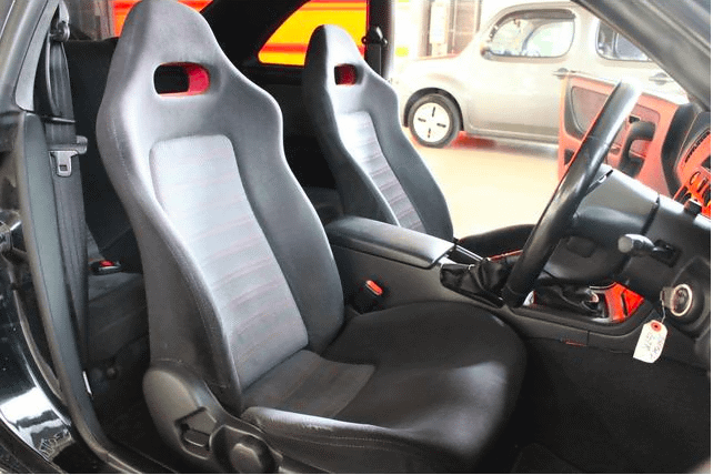車齢25年を迎える車両が増え海外流出がとまらない33GT-R。ここ数年は市場価格の高騰に歯止めがかからずプレミア度は上昇し続けている。Vスペックとなると尚更だ。今回入荷した1台はブラックのVスペックに走行距離も控えめでコレクションするも良し、ドライブを楽しむのも良しの貴重な物件である。基本は純正コンディションの車両だが、個性的なTRIALのAWはエクステリアをより引き締めてくれる。今後の価値が上昇することを約束された1台、ローンを組んでの購入もオススメだ。