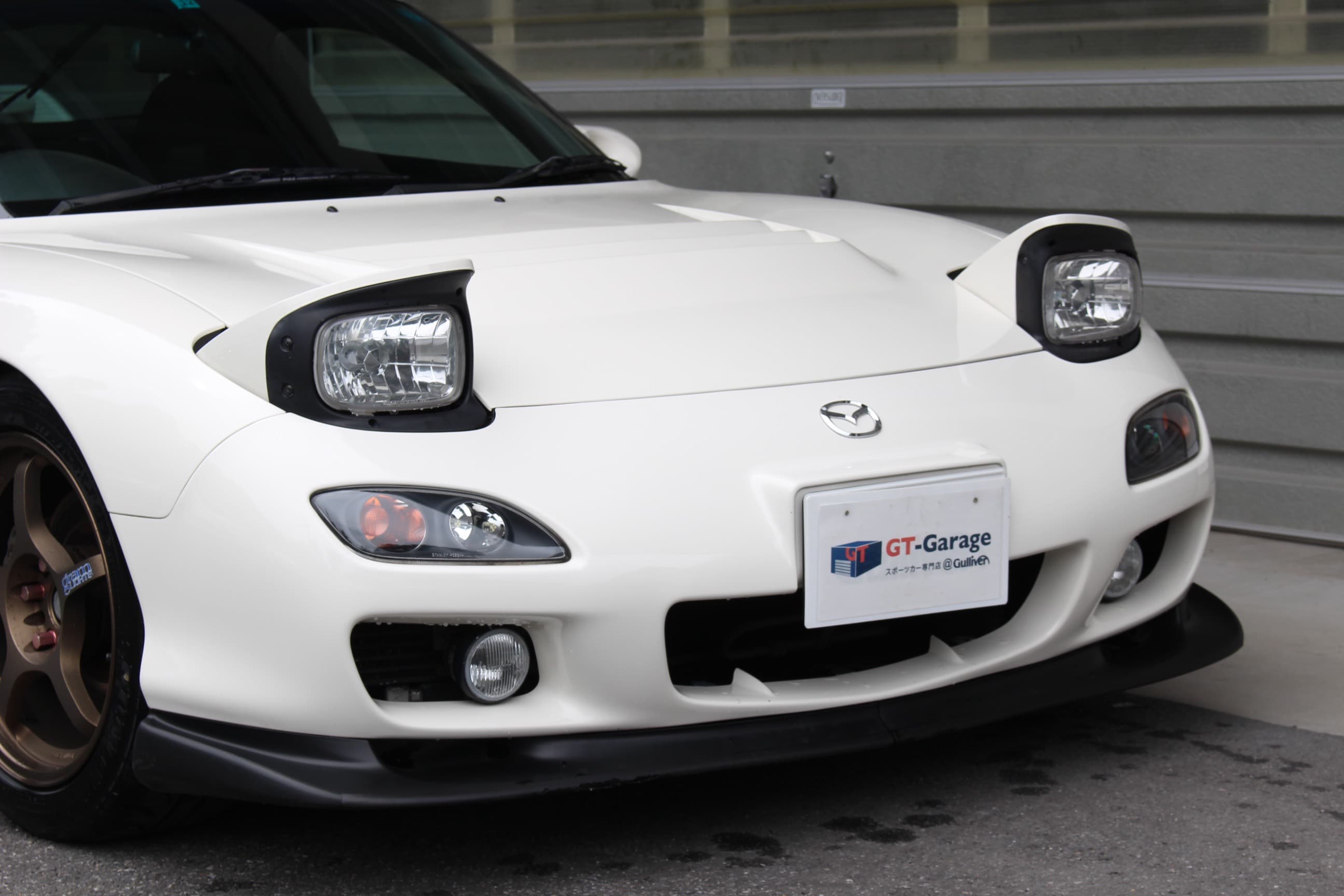 今回入庫の車両は多くの構成パーツがAUTOEXE製に置き換えられており、正にマツダ愛が溢れる1台といえるだろう。AUTOEXEはミスタールマン、寺田陽次郎氏が代表を務めるマツダ車専門のチューニングパーツメーカーだ。シャストホワイトのボディカラーに落ち着いた色味のグラムライツをインストール、正に美しい仕上がりのRX-7となっている。機関系も良好で走行距離的にもまだまだこれからの1台だ。