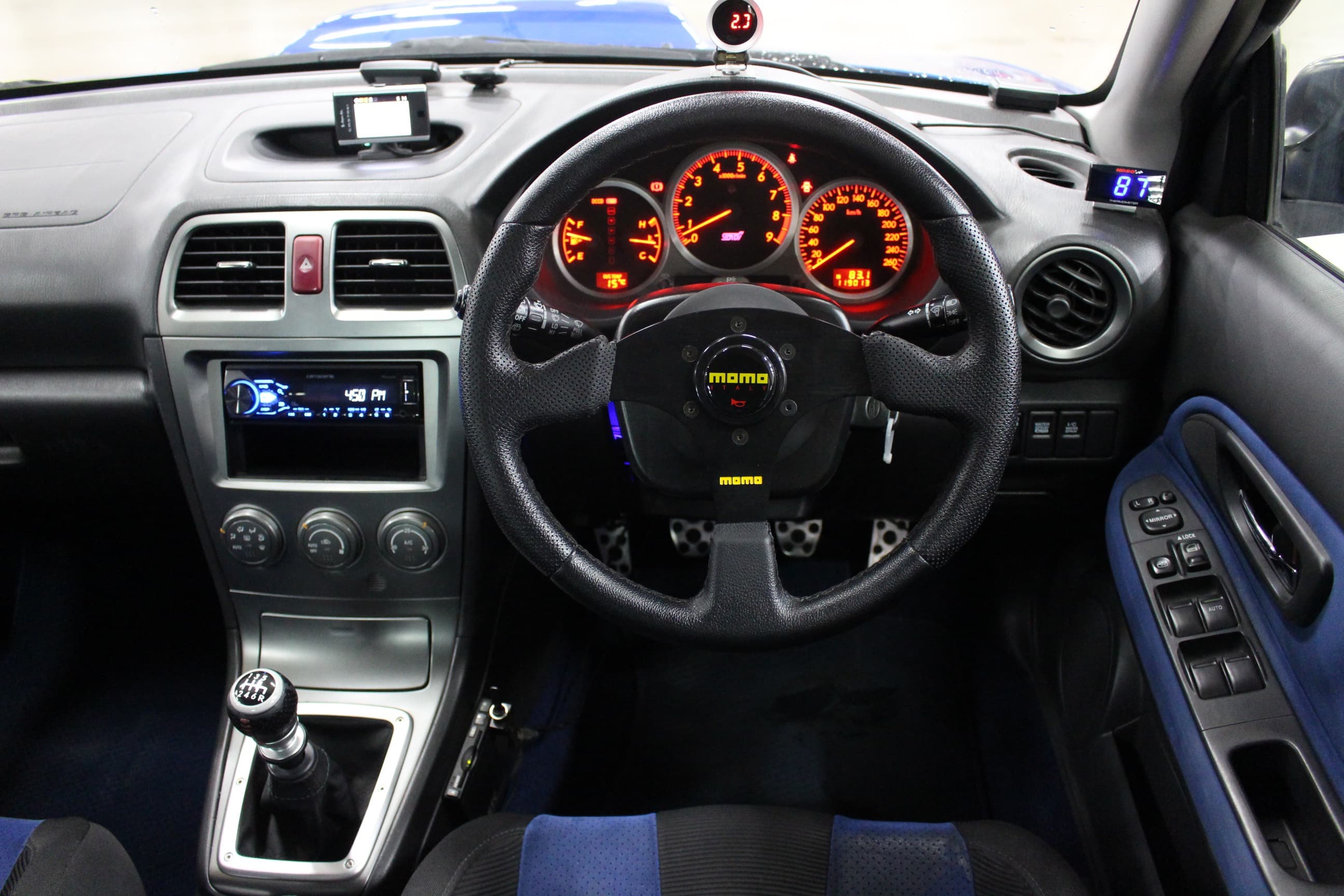 フロントビューからベース車両との違いを主張する1台です。人気のないる屋エアロだけでなく、各所にチューニングが施されています。WRC’06モデルエアロにBLITZ車高調、Wedsportアルミとバランス良く仕上げられています。前オーナー様の拘りが詰まったこの1台・・・是非とも次の愛車にいかがでしょうか。