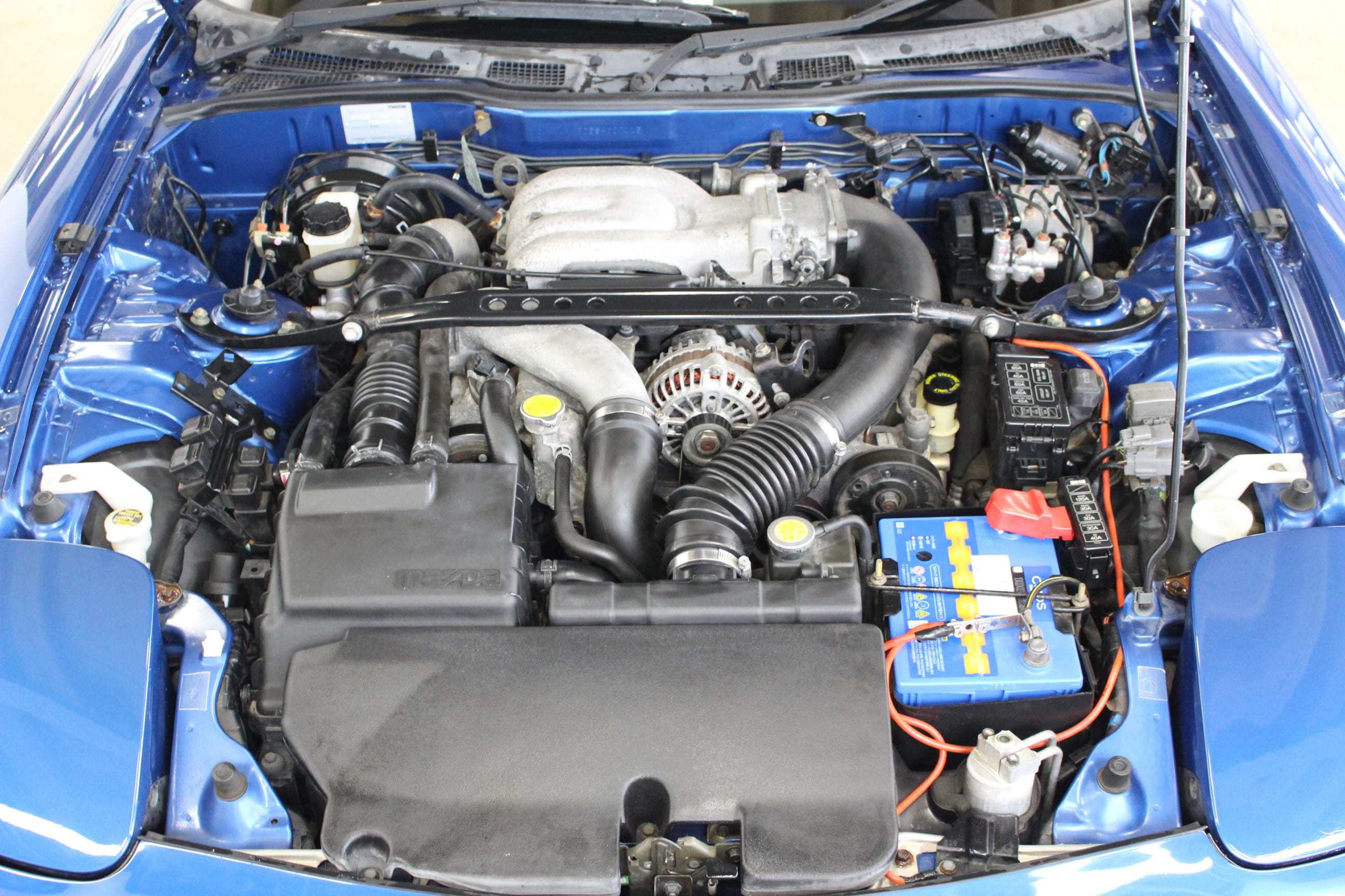 今回入庫の車両はH14年式と最終の6型に分類される「タイプR バサースト」というグレードの1台。バサーストとはオーストラリア東部にある地名で、そこに位置するマウントパノラマサーキットで行われている「バサースト12時間レース」で過去RX-7が勝利した事に由来する名称だ。過去2~4型でもバサーストの名を冠するグレードが設定されていた。