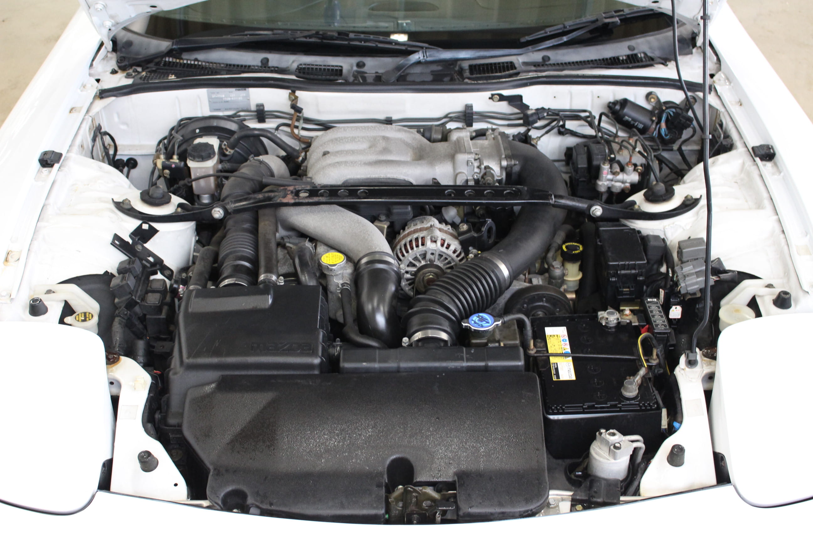 今回入庫の車両はH14年式と最終の6型に分類される「タイプR バサースト」というグレードの1台。バサーストとはオーストラリア東部にある地名で、そこに位置するマウントパノラマサーキットで行われている「バサースト12時間レース」で過去RX-7が勝利した事に由来する名称だ。過去2~4型でもバサーストの名を冠するグレードが設定されていた。