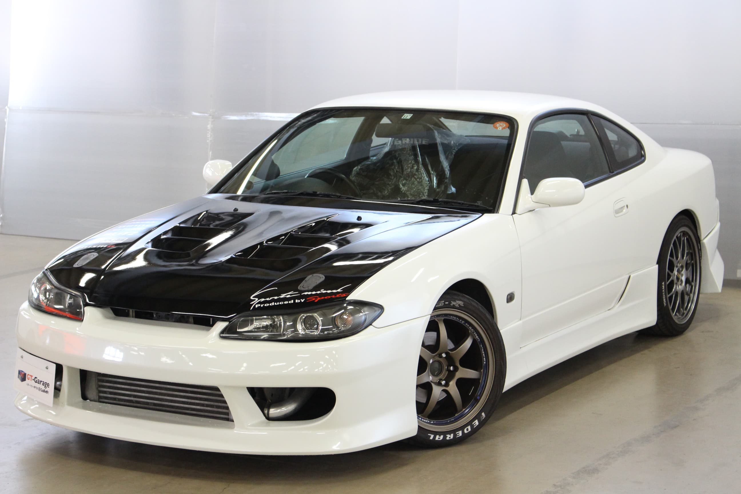 VERTEXエアロや軽量FRPのボンネットとトランクを装着しており、元々ライトウェイトなボディに更なる軽量化がはかられている1台。定番メニューの前置きインタークーラーキット他、吸排気系も変わっているが、エキマニまで交換されている車両はなかなかレアといえるだろう。エンジンやブースト系のチューンは実施されておらず、街乗りでも特に違和感なく乗っていただける車両だ。見た目よりも実用的でスタイリッシュなS15と言えるだろう。