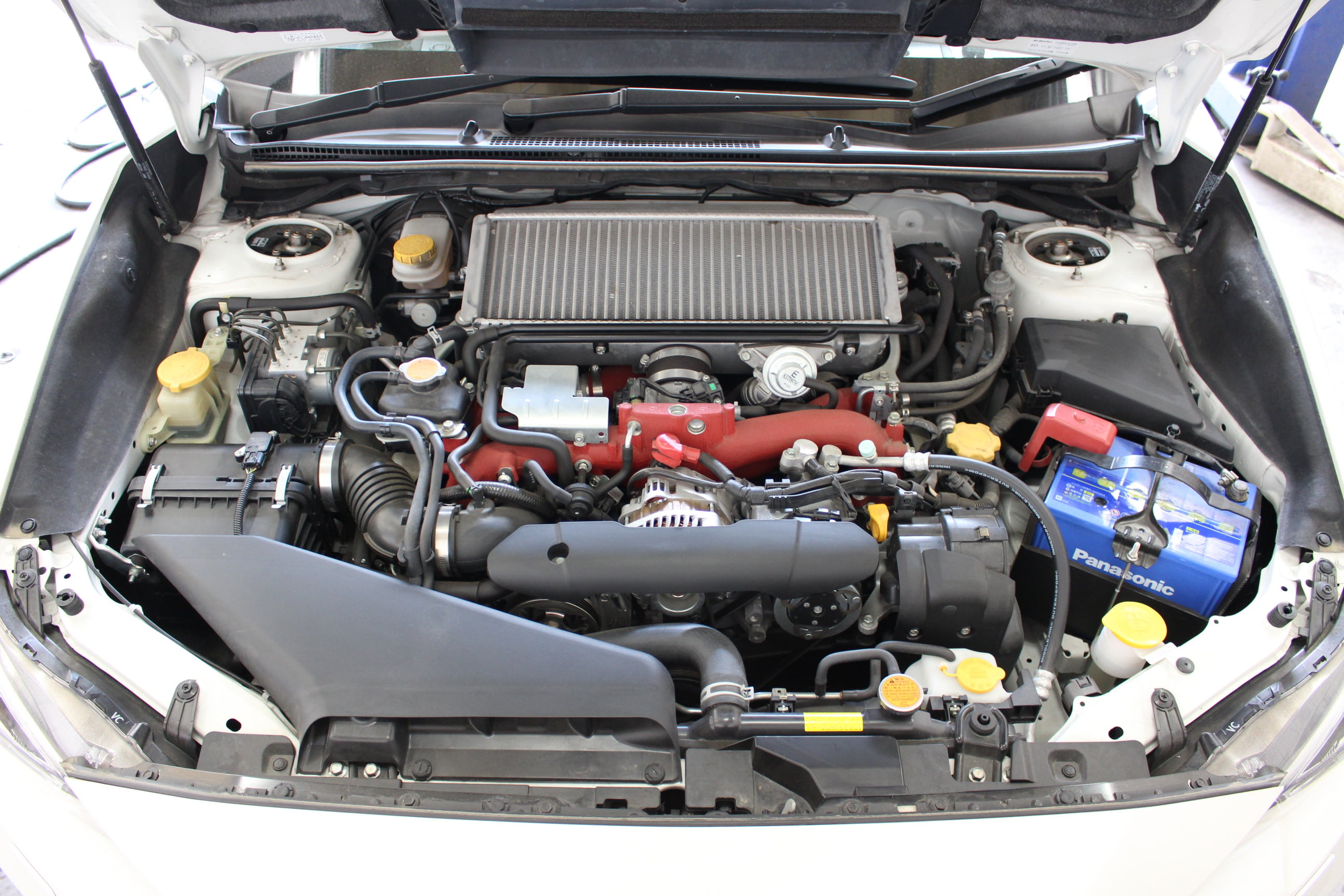 VAB型となるWRXSTIは4代目のインプレッサをベースとしたプラットフォームを採用、エンジンは伝統のEJ20型を搭載し、最高出力308PS/最大トルク43kgf·mという強大なポテンシャルを発揮する。GRBやGVB比で突筆すべきはボディ剛性が大幅に向上していることで捻りや曲げ剛性、前後トレッドなど細部に渡って剛性の向上が行われている。あくまで筆者の感想ではあるが、実際に運転してみるとボディ全体に遊びが無くなり引き締まった1ランク上の乗り味を感じる事が出来る。