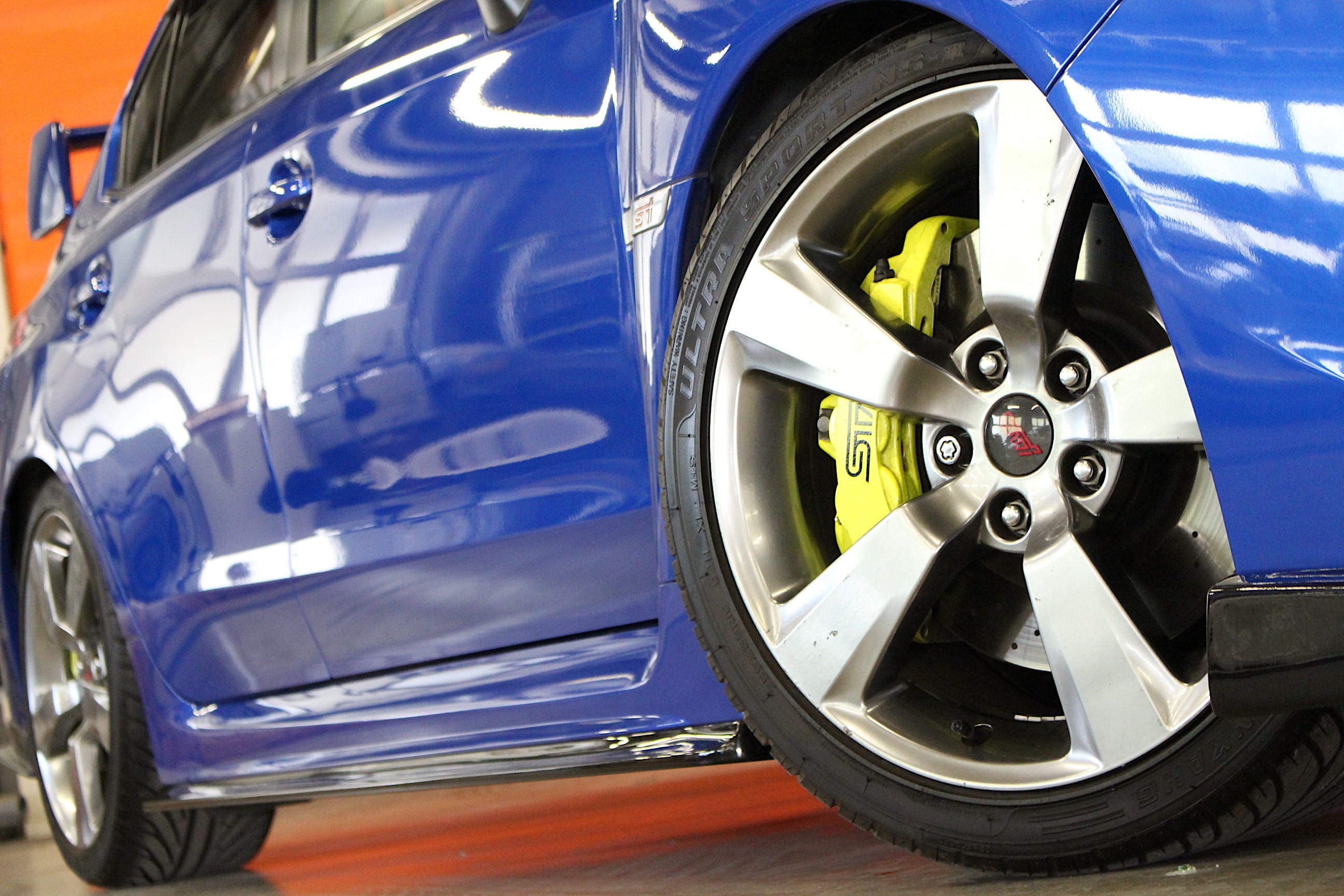 今回入庫のWRXはD型のSTIだ。D型以降は後期型と呼称されるケースも多く前期型と比べ変更ポイントが多い。主な物でフロントは対向6podブレーキへと変更、新電子制御マルチモードDCCDを搭載しヘッドランプユニットも新機軸のものに変更されている。この車両ではChargeSpeedのエアロで彩られ、純正ウイングにそびえ立つPERRINウィングスタビライザーでかなり迫力のある仕上がりだ。GRB型のAWをチョイスしている点もオシャレなポイント。マフラーも保安OKだが極めてレーシーなサウンドを響かせるやんちゃ1台だ。